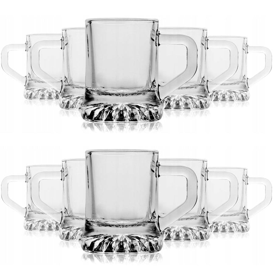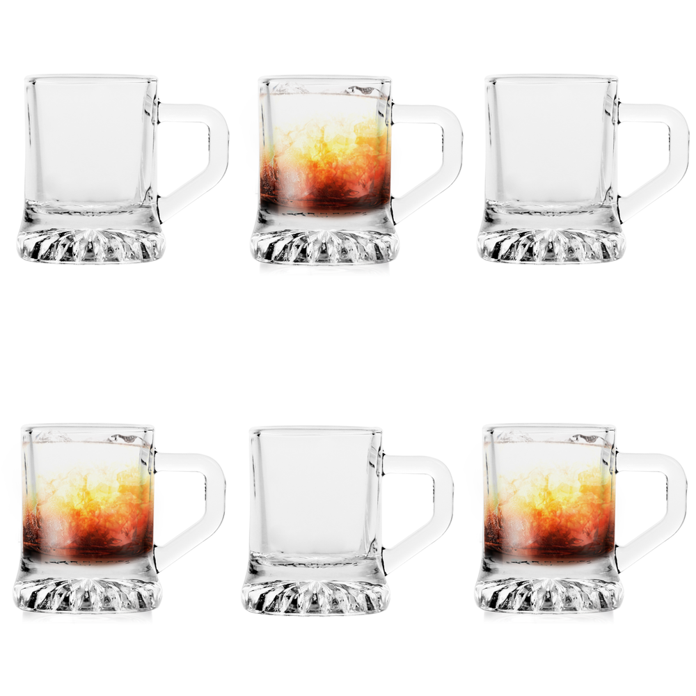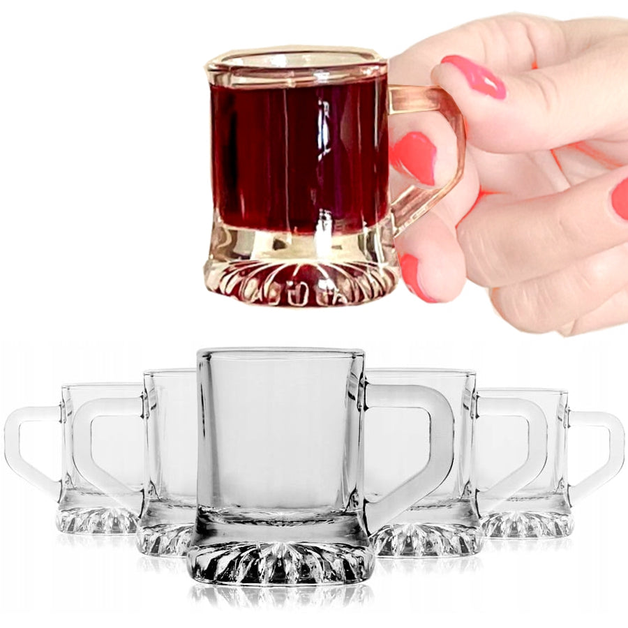 ATTRAKTIVE FORM: Dieses Wodka-Shotglas-Set wird das Highlight jeder Party sein! Die charmante Form der Becher mit einem dicken Boden und einem bequemen Henkel wird die Aufmerksamkeit all Ihrer Gäste auf sich ziehen.